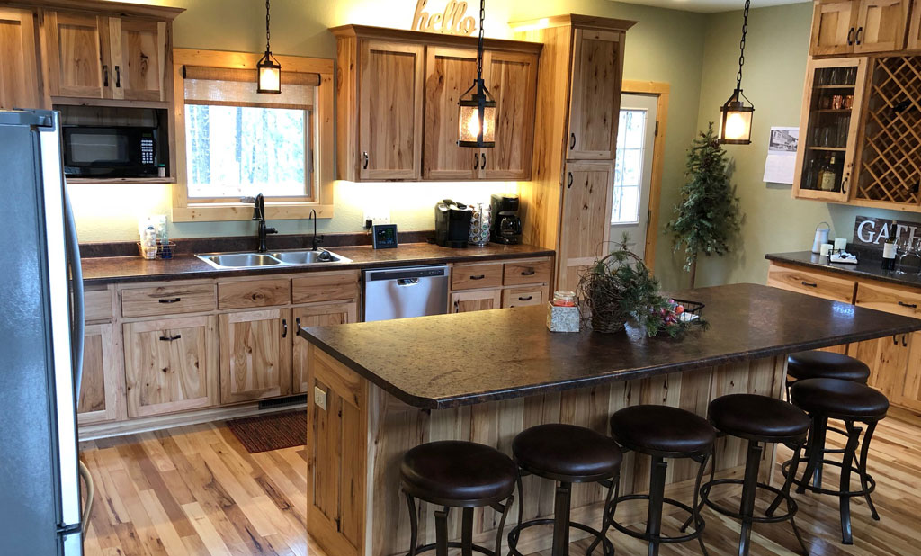 This luxury home is set at 6,000 ft elevation on 20 acres located in the northern Black Hills. It sleeps up to 15 with 5 bedrooms and 4-1/2 baths (Main floor: 2 king ensuites. Loft: 2 twin beds. Lower level: 3 bedrooms- 1 queen ensuite, and two bedrooms that share full bath - 1 queen & 1 with two XL twins. 2 couches, rollaway & Pak-n-Play). Two-car garage. Gas grill, hot tub. Full kitchen with large island & gathering spots for groups and family events.